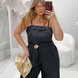 Disponível em cores marcantes como preto e a combinação preto com oceano, o conjunto é ideal para produções noturnas, eventos especiais ou composições fashionistas com salto e acessórios modernos.